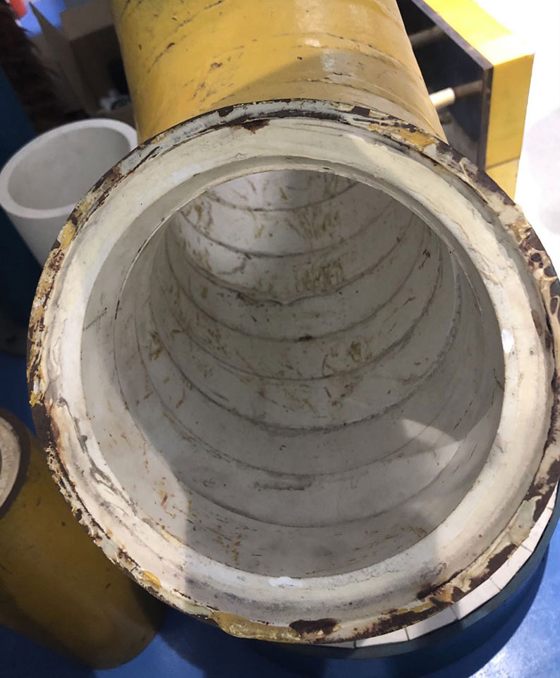 整體陶瓷耐磨管內(nèi)部是高溫?zé)频奶沾晒?,一體成型,耐磨性好,抗沖擊,其洛氏硬度可達HRC80-90,僅次于金剛石。并且可以開磨具生產(chǎn),根據(jù)現(xiàn)場情況定制陶瓷管壁厚、長度等參數(shù)。再將定制的陶瓷管放入鋼管中,并用專用膠粘牢。